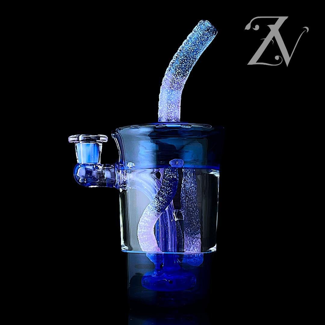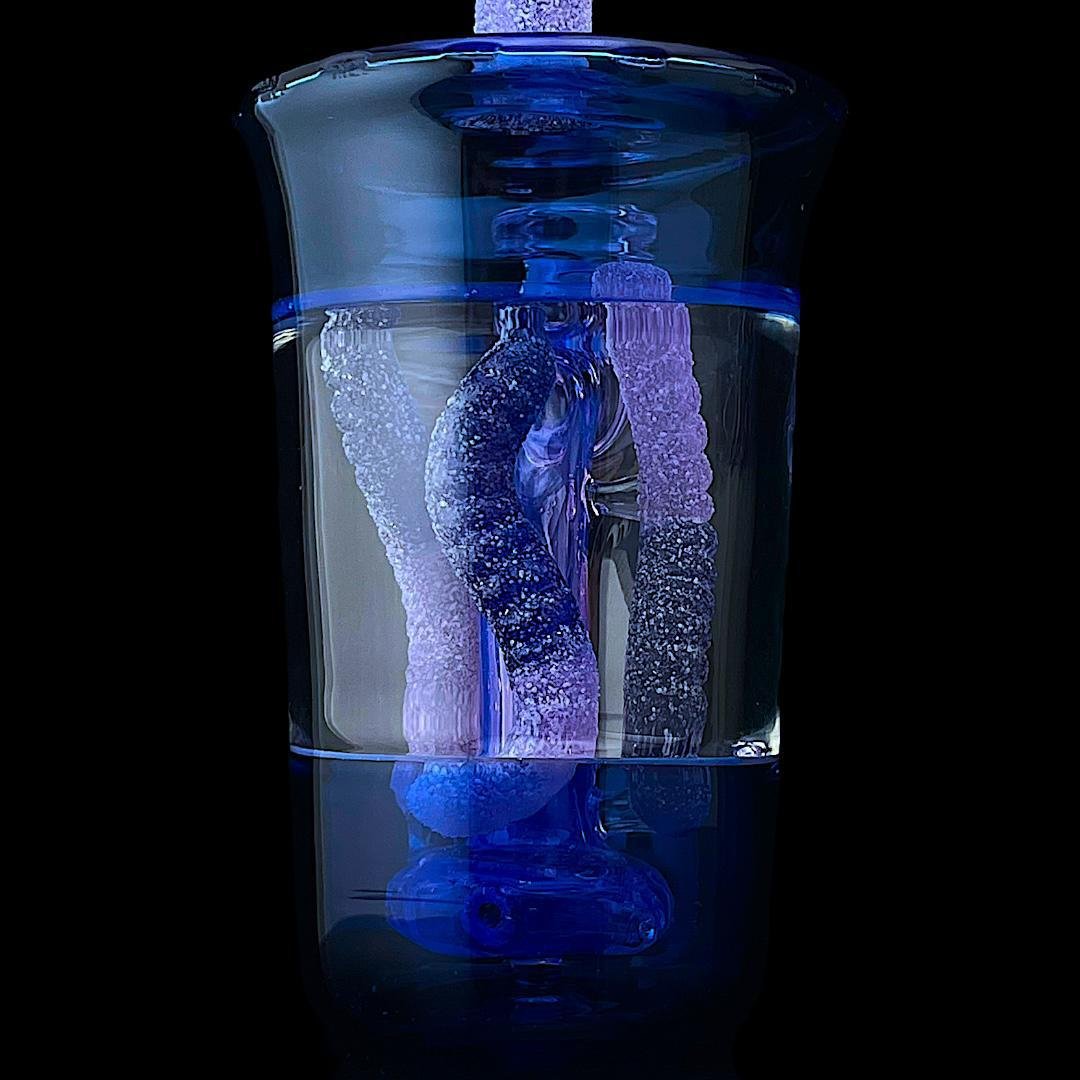 EMPERIAL GLASS: SOUR WORM CUP RIG PINK SLYME X COBALT