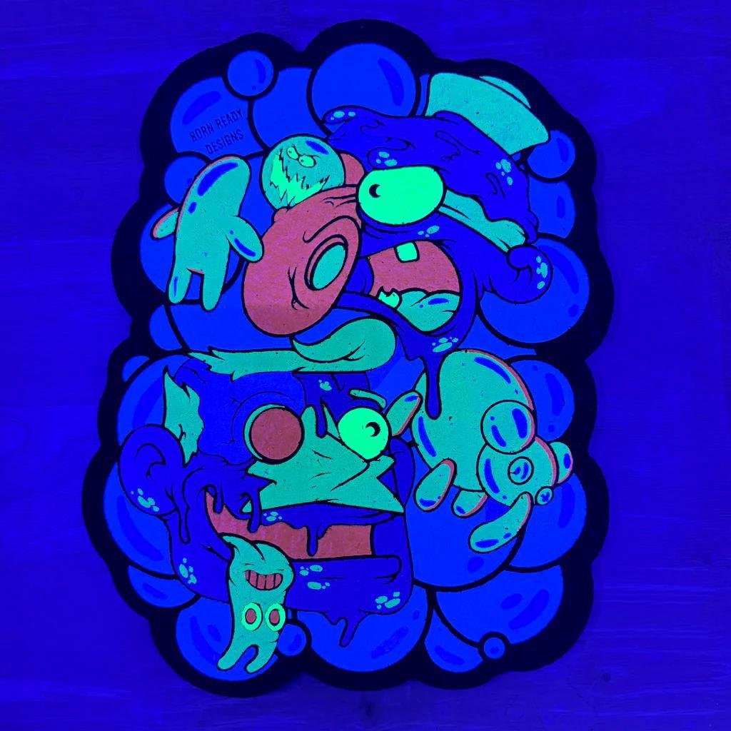 By: @darkmountaincult and @bornreadydesigns 12” w/ screen print – double sided & numbered *UV & GLOW LE: 100