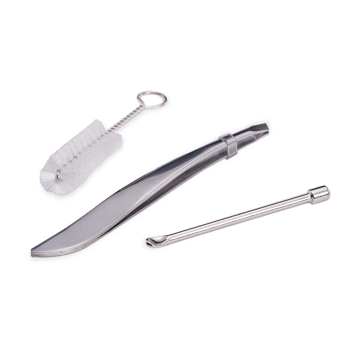 This cleaning set from XMAX is designed for the XMAX V2 Pro, but will work with most vaporizers and accessories. It includes a small round brush, a metal tool, and a pair of tweezers.